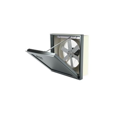 Dynamic wall mounted extractor fans with motorised hatch, for smoke exhaust in case of fires, 400°C/2h and 300°C/2h