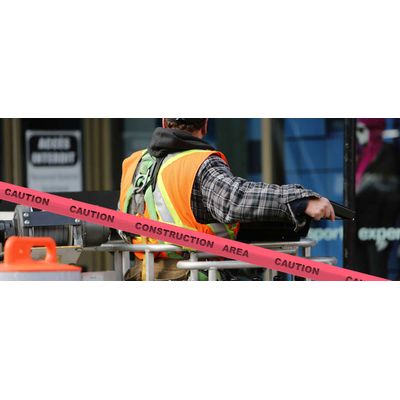 Construction zone tape is used in construction zones to notify people about ongoing construction and that there are possible hazards within the demarcated area. Construction tape usually employs a yellow-black colour combination and incorporates printed text, such as "Under Construction", "Caution", "Work Zone", and "Keep Out" (among others). This type of barrier tape is commonly found at the site of renovations, demolition, and minor repairs.