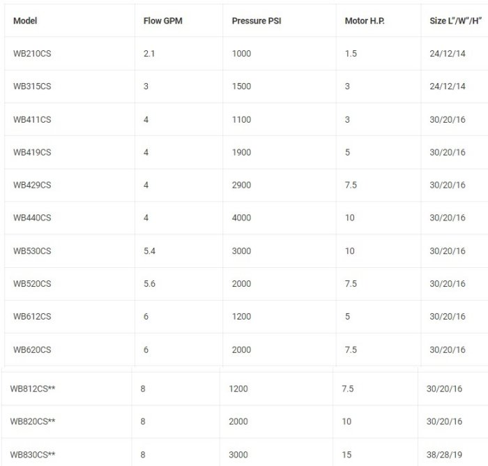 - Belt driven ceramic plunger pump on most units