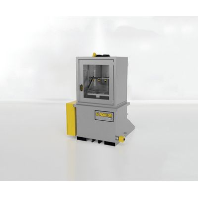 The Gladiator CRB Washer was developed to provide efficient cleaning of a variety of parts in a portable unit requiring minimal floor space. The process consists of a turbulated immersion wash with heated cleaning solution and vertical agitation. The cleaning process also features fixture rotation to enhance washing and drainage.