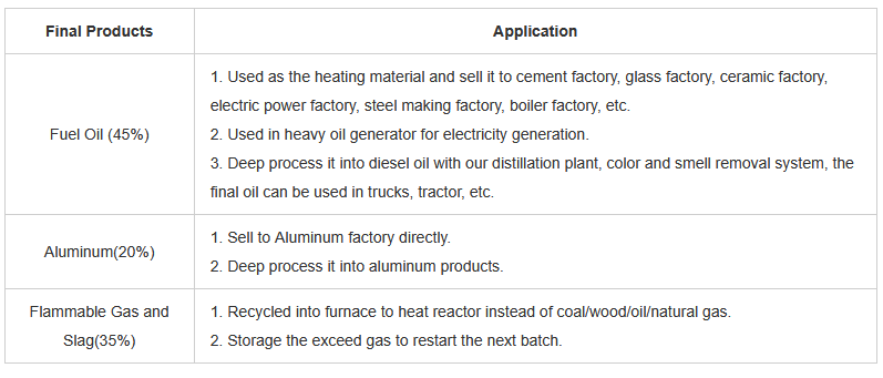 - Output products: fuel oil, aluminum, flammable gas.