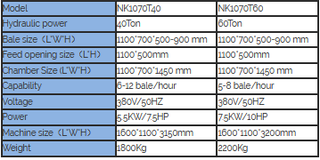 NK1070T60 Cardboard Baler Cardboard recycling machine can make the volume reduction be nearly 3:1 OR 5:1 when pressing plastic film or cardboard/paper waste, which will reduce waste storage area, streamline overall waste processing operations and save transportation and labor costs.