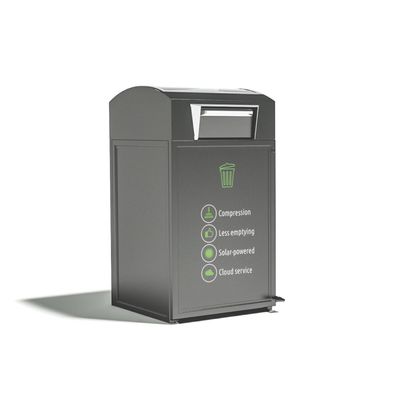 The smart waste bin reduces the number of required maintenance services, saves the environment and increases the cost effectiveness of emptying activities, by decreasing the required frequency of haulages. The full bin of compressed waste equivalences 1 200 liters of uncompressed waste.