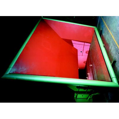 A crane system lifts the waste from the refuse pit and transports it to the feed chute, which consists of a hopper and a chute shaft. The feed rams push the waste from the feed chute onto the grate. The waste column in the chute shaft prevents false air from leaking into the combustion system. Microwave level detectors report the height of the waste column to the crane operator. Bridging and obstructions are prevented to a large extent through the inclined side walls of the hopper and the flaring of the chute shaft. A shut-off damper is located underneath the feed hopper. It is closed when the plant is not operating.