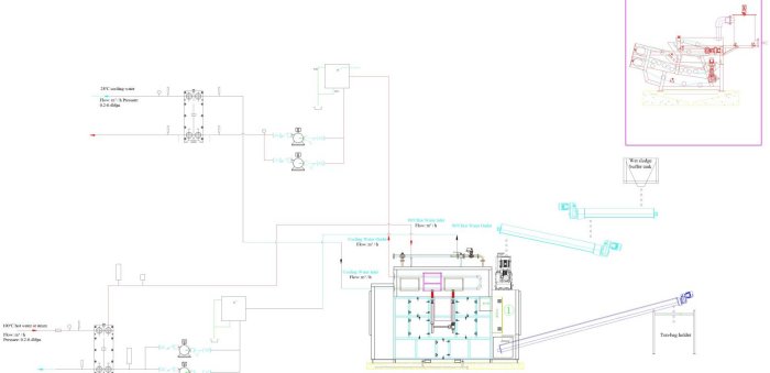 Waste heat dryer utilized low-graded excessive thermal source, such as flue gas waste heat; Steam or Steam condensate water; Anaerobic digestion (obtain fuel gas to heat water); Sludge pyrolysis (obtain fuel gas to heat water); and Gen-set waste heat, so as to transferred into 90C hot water for drying. Because of using waste-heat, the drying process does not require additional heat capacity, like heating oil or natural gas. It is a creation for CHP solution. The energy consumed during the process is the electricity for the input to conveyor, fan and motor.