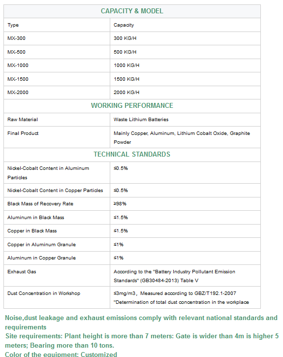 Mingxin - Model MX -Waste Lithium Battery Recycling Plant