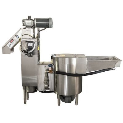 The Somat SPC-50S Waste Reduction System processes up to 900 lbs. of food service waste per hour providing an economic and efficient answer to cutting the high and ever increasing costs associated with waste handling. Somat Pulping Systems are engineered to reduce foodservice waste volume by an 8 to 1 reduction (up to 85%.) Compostable waste enters the pulping tank via the feed tray or scrapping trough where it mixes with water and is ground into a slurry. The slurry is fed to the Hydra-Extractor for de-watering and the result is a semi-dry pulp discharged into a haul-away container or a Somat Dehydrator for additional reduction. The extracted water is recovered and returned to the pulping tank for re-use by the tray or trough.