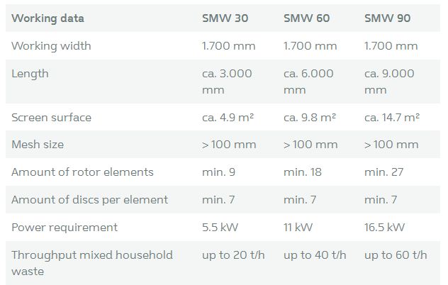 SMW Waste screen is a potent, compact screen segment unit for efficient separation of MSW into two fractions. The rotor elements consist of rugged steel tubes equipped with pentagonal screen discs. SMW Rotor Screens are flexibly adjustable to the individual separating behaviour and transport characteristics of the input material.