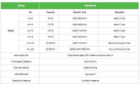 Applicable fuel : Coal/natural gas/LPG/ Diesel/wood/pyrolysis oil. Thickness of Reactor : 16mm/18mm. Cooling method : Water Cooling. Land Required : 300-400m2. Operating Pressure : Constant pressure.