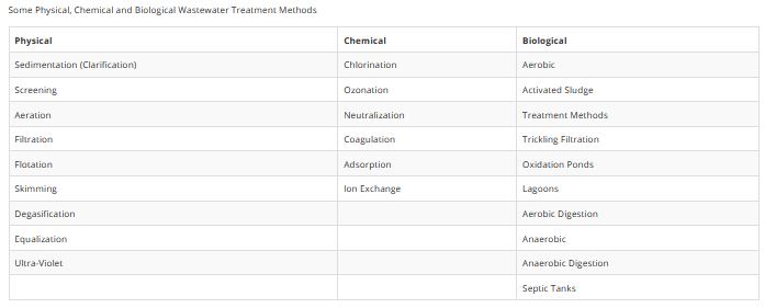 While the devices used in wastewater treatment are numerous and will probably combine physical, chemical and biological methods, they may all be generally grouped under six methods: