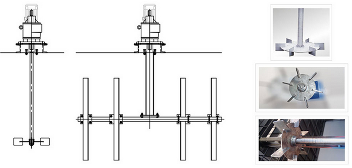 Mixers can be classified under three groups: Mixers of propeller, turbine, flocculator, etc. types, utilised to prepare solutions of a given volume and consisting of motor, impeller and shaft; Static mixers that agitate and mix different liquids by changing the flowrate; and Double -shaft spiral mixers used mostly in sludge dewatering plants, for the purpose of mixing two solids. Many variables need to be considered in order to reach the required agitation efficiency. We offer the optimum solutions as a result of our selections carried out after evaluating together many design criteria such as the energy to be imparted to the surroundings, rotational speed, material density and flow direction.