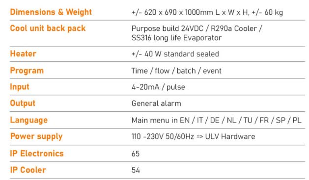 Robust outdoor PE enclosure made with recycled plastic / fully recycable Easy removable cooler / reusable cooler with SS316 evaporator. Future proof cool refrigerant R290a GWP 3 Safety first, ULV hardware 2AVDC User & maintenance friendly.