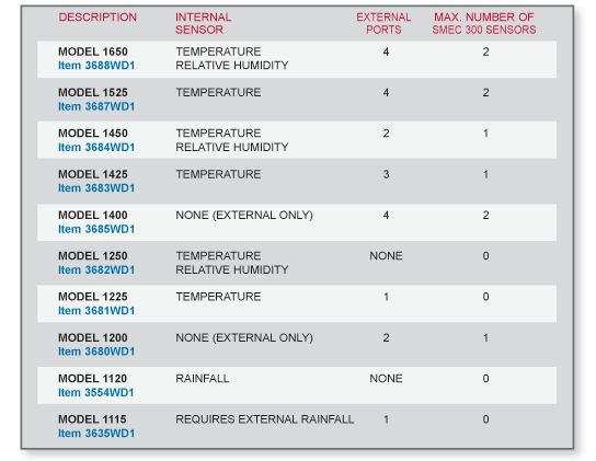 These WatchDog 1000 Series Micro Stations measures temperature and RH from internal sensors, along with their available sensor ports (vary by model). If you require built in temperature only or external sensors only, please see our other 1000 Series Micro Station options.