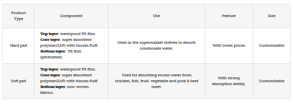 It is used for absorbing excess water from all kinds of foods such as chicken, fish, fruit, vegetable and pork & beef meet.