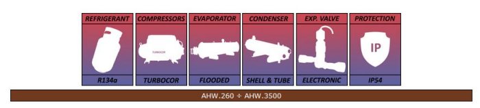 Water-cooled chillers with turbocor compressors. Cooling capacity range 260kW ÷ 3500kW.