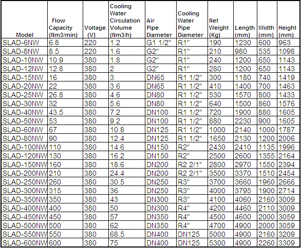 Model SLAD Series -Water-Cooled Refrigerated Air Dryer