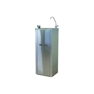 Free standing model, Bent head glass filter and dual control, Hand push button and valve bubbler with flow control, 1/4 HP hermetic type compress system with fan cooled condenser, Regulations assured by thermostat, Polished stainless steel anti-splash deep drawn basin, Exterior stainless steel, Water refrigeration assured in stainless steel tank 18/8, Cooling medium: R134a. Copper cooling coil.