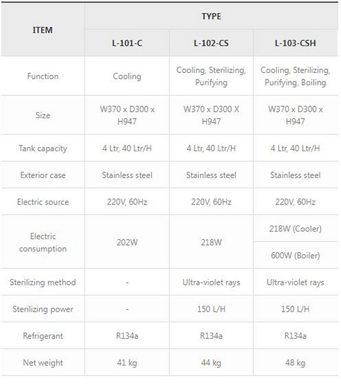 JEITEK - Model L-101-C / L-102-CS / L-103-CSH -Water Cooler