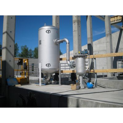 We manufacture pressurised suspended solid filters for steel tanks. The filter cylinder is placed inside a pressurised tank. The filter cylinder is rotated during the backwash flushing. The flushing water nozzles are installed on the cylindrical wall of the external tank. Flushing sludge is removed automatically according to the timer programme or pressure measurement. The flushing takes a very short time, only lowering the pressure in the purified water piping for a moment. We also sell pressurised continuous solid matter filters where the filter surface is cleaned with a rotary brush. This model does not need flushing water because the solids brushed off the filter surface are removed from the filter by the inlet water pressure. In this filter type, brushing and the removal of solids are done automatically, controlled by pressure measurement.