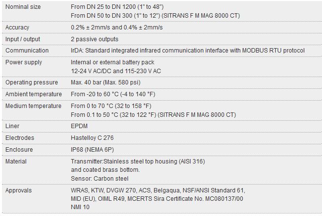 Siemens SITRANS - Model F M MAG 8000 / MAG 8000 CT -Water Flow Meter