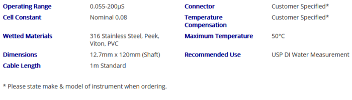 Sentek - Model 18MPRB-USP -Water Laboratory Conductivity Electrode