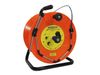 Reel: free standing durable plastic reel in various sizes with central brake system on strong metal frame.