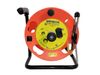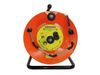 Reel: free standing durable plastic reel in various sizes with central brake system on strong metal frame. 1000 foot and larger sizes have metal reel.
