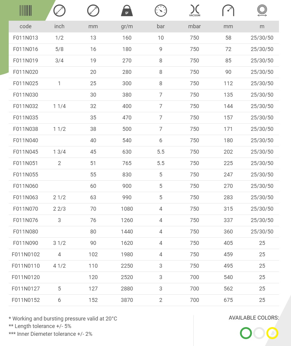 This hose can be used for suction and delivery of water and other liquids or solid materials in Agriculture or Construction.