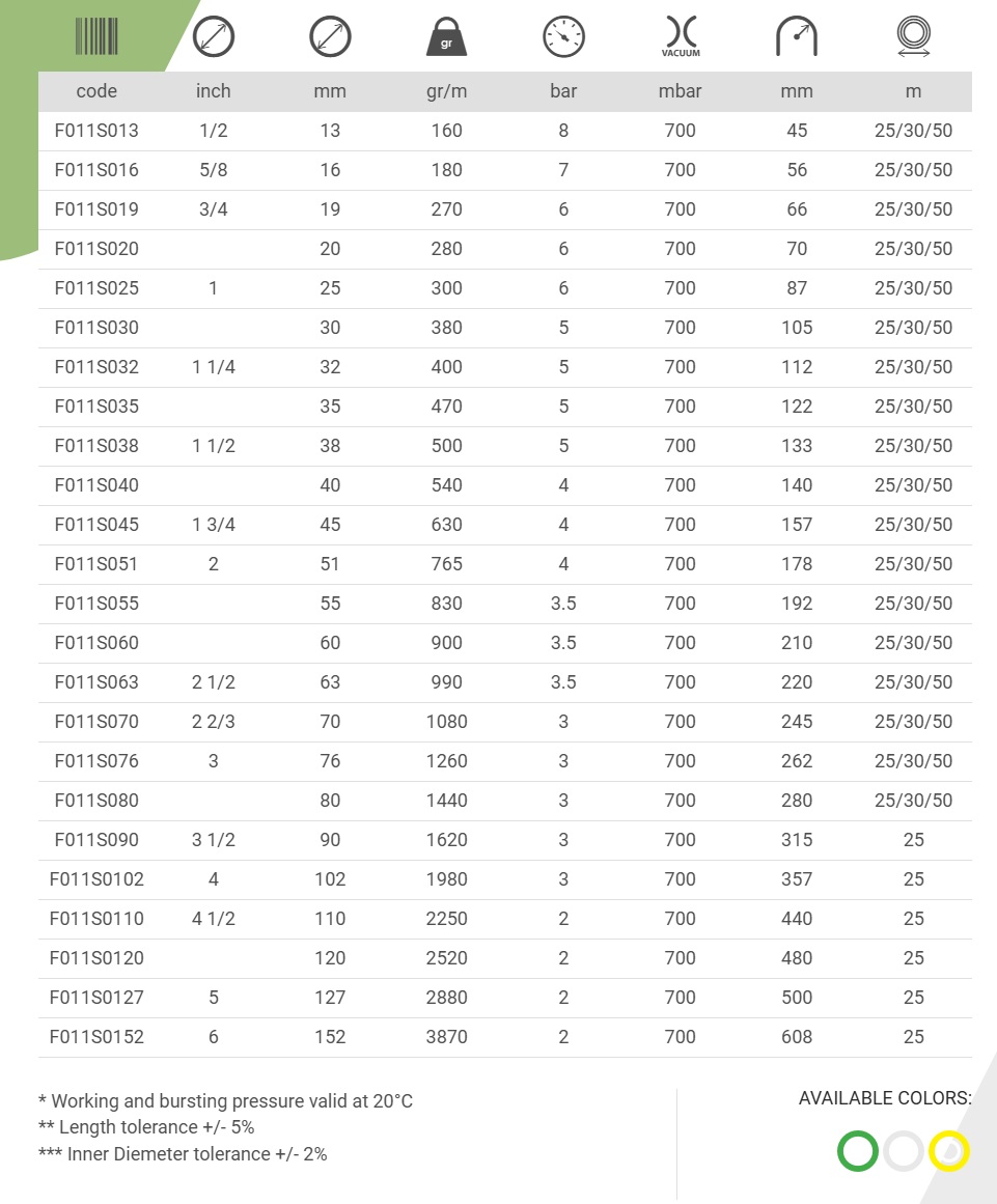 This hose can be used for suction and delivery of water and other liquids or solid materials in Agriculture or Construction in low temperatures.