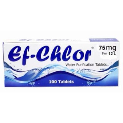 Ef-Chlor 75 Mg Water Purification & Filtration Tablets Each Tablet Purifies 20 liters Water Helps Killing 99.99% Bacteria & Virus from the water pack of 100 Tablets 3 Years Shelf Life