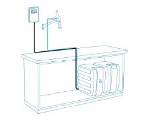 To save valuable benchtop space the system can be ordered as BI configuration. The system will be installed underneath the work bench and only the display and dispenser are mounted on the wall.