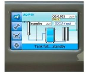 The TOC monitoring during production and intermittent measurements during non-use periods allows to check the organic content in water continuously. The TOC value is measured between 1 and 999 ppb and can be shown in the display to monitor organic impurities.