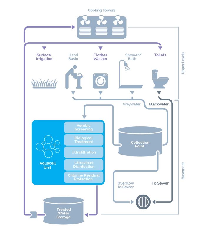 The Aquacell G Series gives commercial developers modular solutions to onsite greywater recycling. The system features a controlled, robust and comprehensive treatment process that combines physical, microbiological and oxidative treatments into the one package: