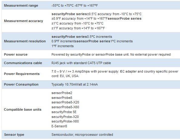 Setup is simple with the sensorProbe and securityProbe autosense function. Once plugged into the intelligent sensor port the base unit automatically detects the sensors presence and configures it for you. All you need to do is set your thresholds for low and high warning and critical parameters. The built in graphing function of the base unit gives you a pattern of temperature trends over time.