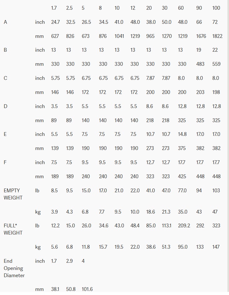 - Drainage: Thumbscrew air vent at top. Stopcock at base. Stopcock diameter for 1.7 to 12 liter bottles is 4.7mm (.187"). 20 and 30 liter bottles have a second, larger stopcock diameter 9.52mm (.375"). 60, 90 and 100 liter bottles have one stopcock 19.05mm (.750").