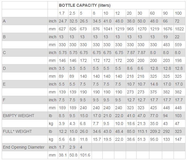- Drainage: Thumbscrew air vent at top. Stopcock at base. Stopcock diameter for 1.7 to 12 liter bottles is 4.7mm (.187"). 20 and 30 liter bottles have a second, larger stopcock diameter 9.52mm (.375"). 60, 90 and 100 liter bottles have one stopcock 19.05mm (.750").