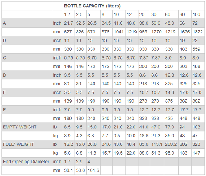 - Drainage:Thumbscrew air vent at top. Stopcock at base. Stopcock diameter for 1.7 to 12 liter bottles is 4.7mm (.187"). 20 and 30 liter bottles have a second, larger stopcock diameter 9.52mm (.375"). 60, 90 and 100 liter bottles have one stopcock 19.05mm (.750").