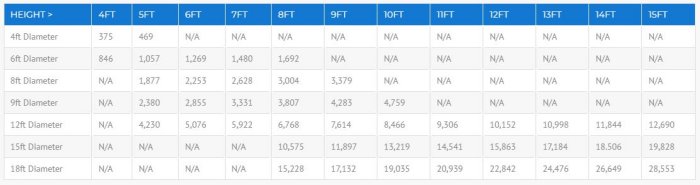 - Diameters from 4ft to 35ft