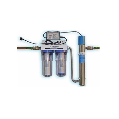 This purifier comes equipped with an electronic ballajst that features an alarm system which sounds an audible alarm if the UV lamp is not functioning properly. All installation hardware (mounting bracket, filter wrench and flexible S-pipe for the connection between filtration and UV) are supplied with the system. Shutoffs are not supplied and are optional, depending on the plumbing set-up. This residential water purification system offers very efficient water treatment at a low cost per unit volume. The system is designed for ease of installation and is fully tested prior to shipment.