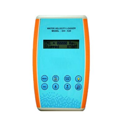 The Virtual Make “Water Velocity Logger” Model: DVI-K20 is a small electronic hand-held device that can be used to measure flow velocity from mechanically rotating current meter. A superior feature of the DVI-K20 is its ability to store up-to five current meters data at a time and interface directly to a Laptop, Pocket-PC, or other computing device and provide data in MS-Excel File Format that can be used externally to compute discharge. Current Meters perform a mechanical switch closure can be used with the DVI-K20 to produce a clean, noise-free signal. To measure and compute velocity, the DVI-K20 provides flexibility to User to Program it for upto 5 Current meters calibration equation with up to 3 rating equations for each current meter. USB port is provided for data downloading from terminal to Computer/Laptop. Data file is saved in Microsoft’s Excel Format.