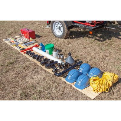 We call our water well drilling kits “Missionary Kits.” They include all of the basic necessities for keeping Lone Star water well rigs drilling: a 4-inch casing flush tool, 4-inch casing slips, a 3/8-inch hollow braid rope, hoist bracket bailer tripod assemblies, a PVC bailer, hard hats and a tool box with pipe joint compound, a grease gun, wrenches and miscellaneous nuts and bolts.