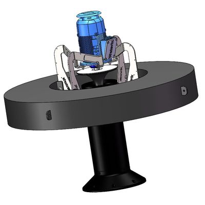 Waterix AIRIT 200 is a compact sized and lightweight aerator, which is ideal for aerating both for small sewage basins and lakes. The Waterix AIRIT 200 aerator is also favored for the aeration and mixing of leachate from landfills, where its special characteristics of easy handling, reliable structure and low energy consumption are best emphasized. The AIRIT 200 aerator needs an area in the basin with a diameter of approximately five meters. An intake pipe up to a length of twelve meters may be fitted to the aerator. When fitted with the long intake pipe, the device is especially suitable for aeration of deeper basins or lakes.