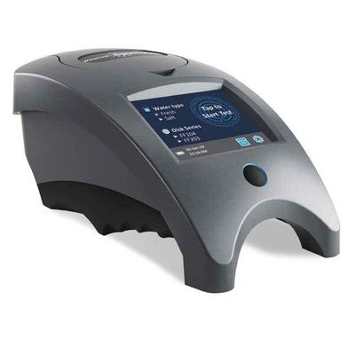 It uses special sealed test discs that contain the precise amount of reagent needed to perform a complete series of tests. The discs are available for fresh and seawater.