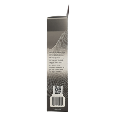 The COM-300 is a professional grade level pH/EC/TDS/Temp meter ideal for all water quality testing, hydroponics, water purification applications, wastewater regulation, aquaculture, colloidal silver, labs & scientific testing, pools & spas, ecology testing, boilers & cooling towers, water treatment and more.