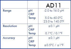 AD11 is the most advanced microprocessor based Waterproof pH/Temp pocket tester in the market. Fast, stable and precise, these testers are for users that require great accuracy. Simple user-replaceable pH/Temp probe: just unscrew the plastic ring on the top of the electrode and replace it with a new one! 2 rows display LCD (reads both pH and temperature measurements) and built-in HOLD function that freezes the display for easy and accurate recording. Other features such as stability indicator, automatic calibration and automatic temperature compensation make these waterproof pocket testers a must-have in a variety of industries. The modular design allows to replace the electrode in a fast and simple way.