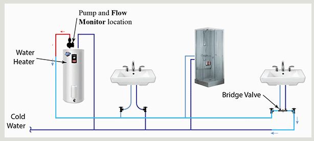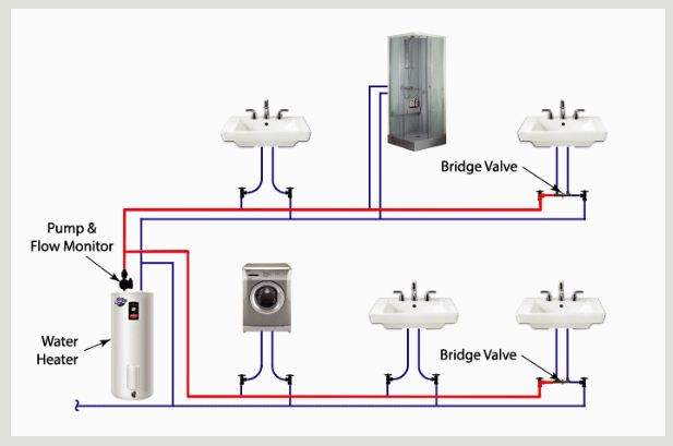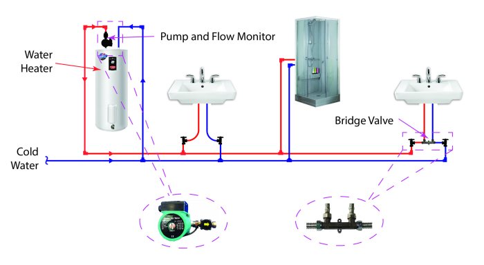 TheBridge Valvehas a built-in temperature sensor that closes when hot water reaches the farthest sink.