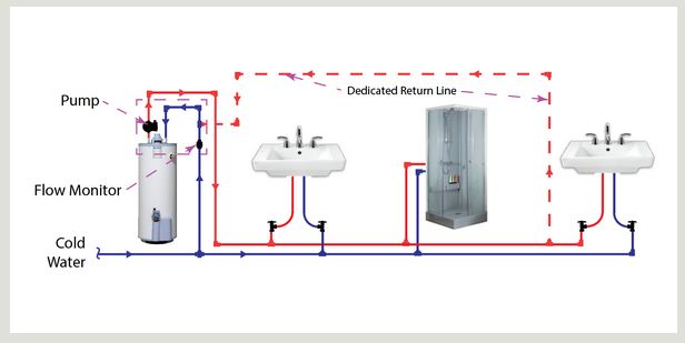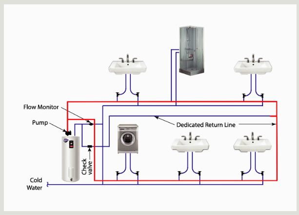 When the integratedFlow Managerdetects hot water use anywhere in the house, it turns on the hot water pump.