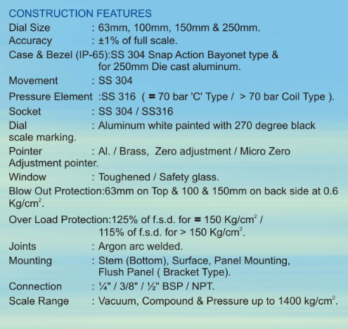 Micro Weather proof gauges suitable for corrosive environment and gaseous or liquid media that will not obstruct the pressure system.