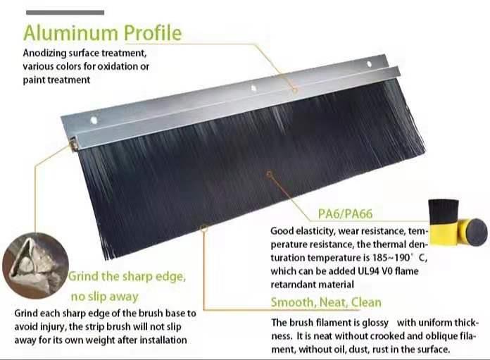 Weather seal brush is one kind of strip brush, which mounted on the bottom of a door. The function is keep warm and keep out pest and dust: We are Chinese strip brush manufacturer and supplier. We provide various Seal brushes with regular sizes, and can also customize solutions under different sealing condition according to your request. If you have request, please contact us. We will give you a quotation freely based on your size and material.