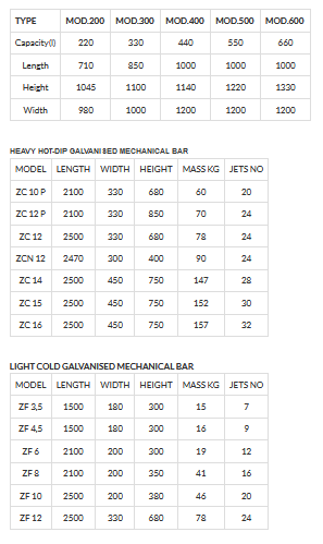 General features of the product: Polyethylene tank. Hand-washing tank. Circuit-rinse tank. Level pipe. Pump 100-135 in aluminium-brass. Suction filter. High pressure pipes. Diverter unit on frame with division by sector and volume. Bag filter. Accessories control valves. Flip lid. Galvanised steel frame. Complete tank drain with valve.